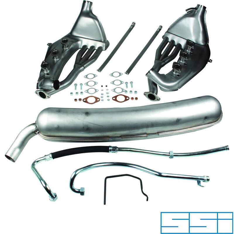 Exhaust conversion set, free-flow, with one Ø60 mm tail pipe. Made of stainless steel. Including heat exchangers and oil pipes