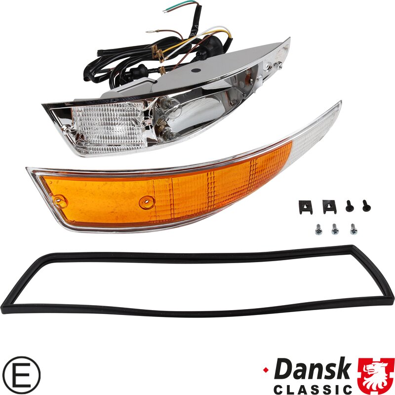 Indicator, front, complete with metal housing, with E-mark, left