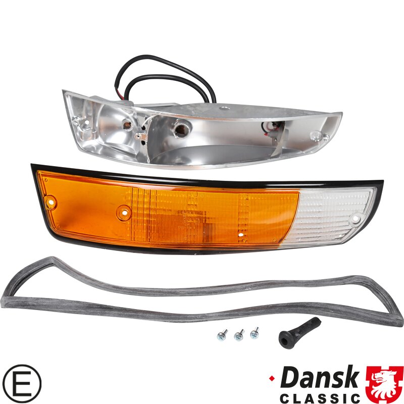 Indicator with black rim, front, complete with metal housing, with E-mark, left