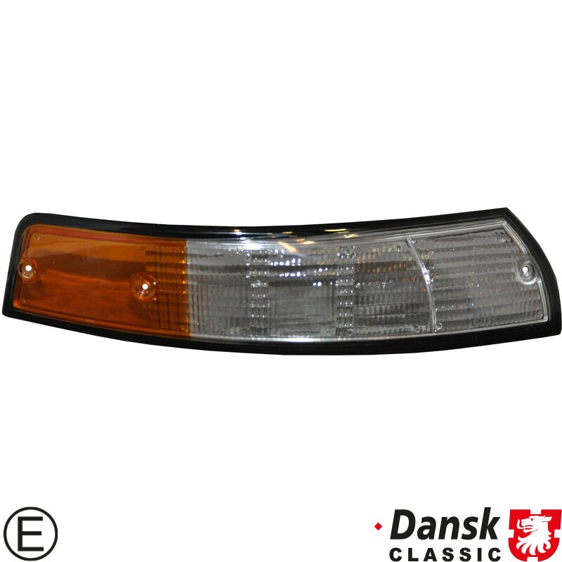 Lens for indicator with black rim, front, US version, clear/orange, right, with E-mark
