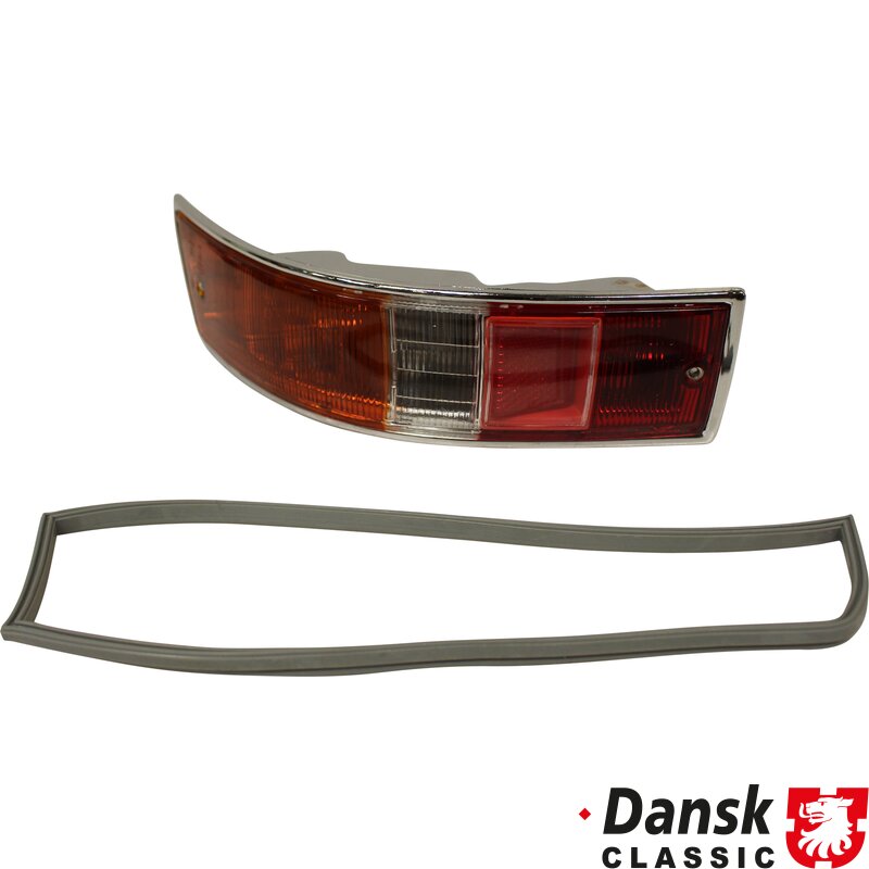 Tail light with red/orange/clear glass and rubber seal, EU version, left, with E-mark